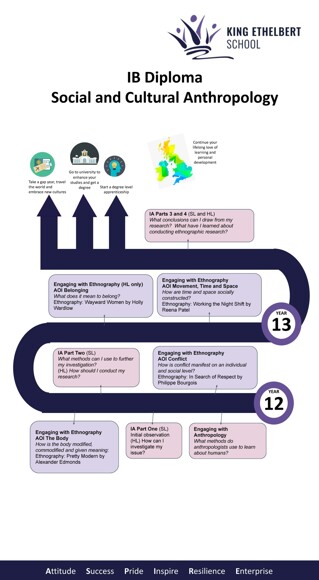 In key stage 5, we offer students the BTEC L3 Diploma in Health and Social Care, IB Social and Cultural Anthropology and IB Psychology. In all of these courses we link the IB values to all lessons. Students are encouraged to have high aspirations, and to make links between the vocational and general transferable skills. We aim for the highest levels in coursework and examined units, and plan educational visits and speakers, in order to inspire and motivate students, and to encourage them to see their work from a different perspective.