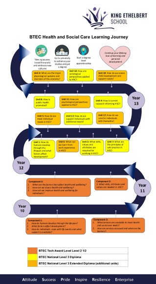 In key stage 4 students can study BTEC L2 Tech Award in Health and Social Care. Through this course, we focus on an individual's journey through life and the factors that affect development, including education. We aim to develop an appreciation of the informal nature of education throughout life, from child development to training and experiential learning in adulthood. Visits from professionals are organised to talk to students about their career path.
